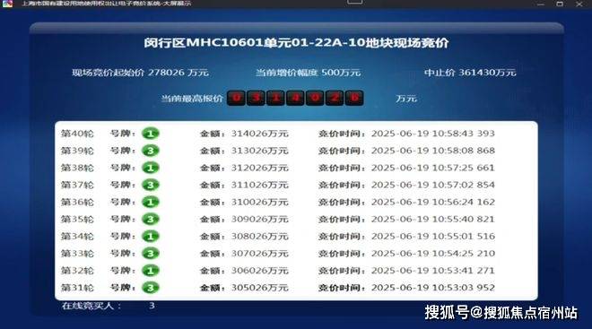 19日6月,地块出让闵行1幅,01单位01-22A-10地块地块名称为颛桥镇MHC106,质为居处用地筹备用地性,.05公顷出让面积4,率为2容积。0轮竞拍始末4,市成长有限公司竞得最终由上海保利城,4026万元总成交价31,2.95%溢价率1。售楼处电话利都汇和煦: